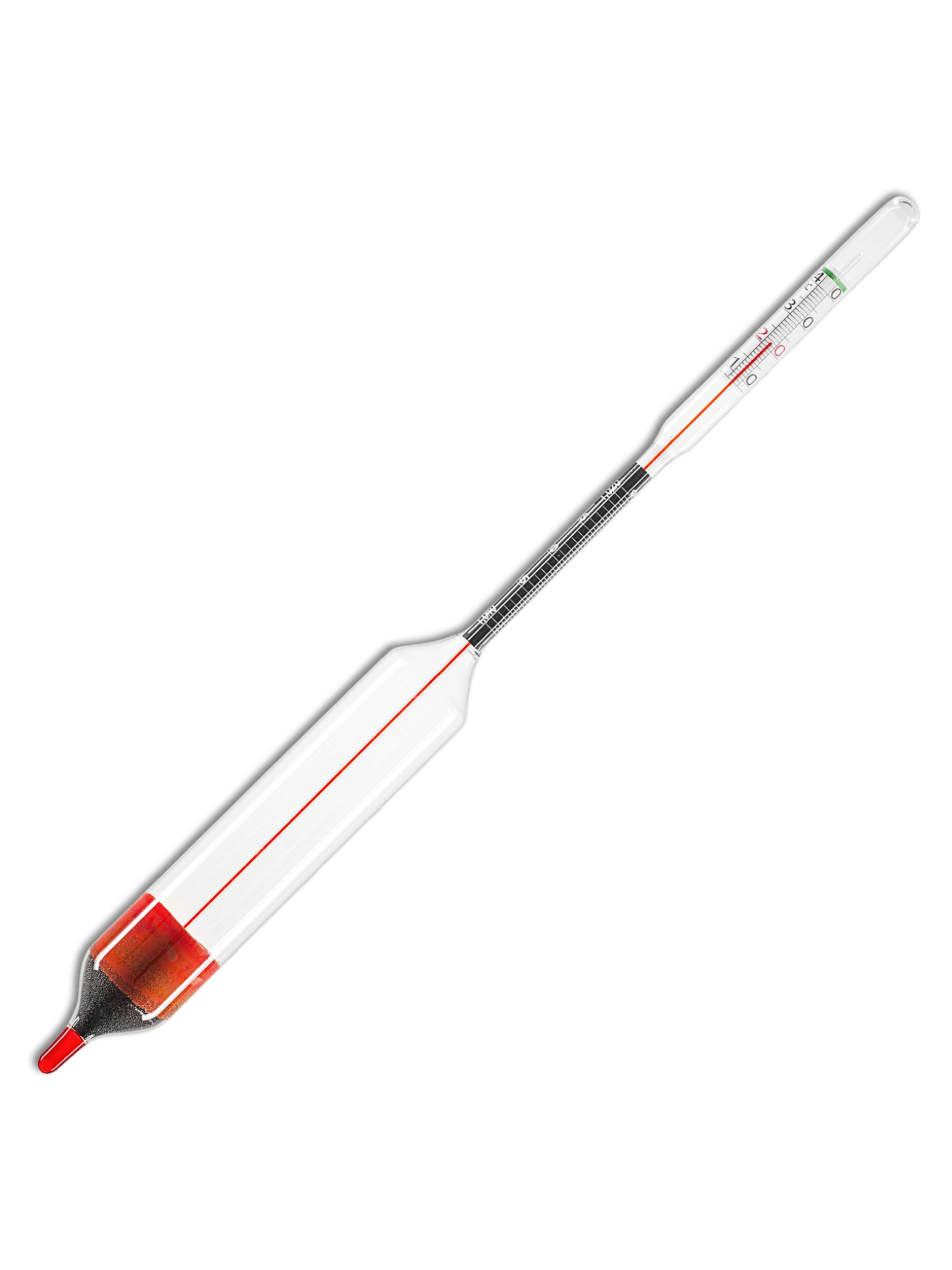 Instrumento clássico para medição de densidade e temperatura do leite, muito útil em laboratórios menores e em análises de campo.
