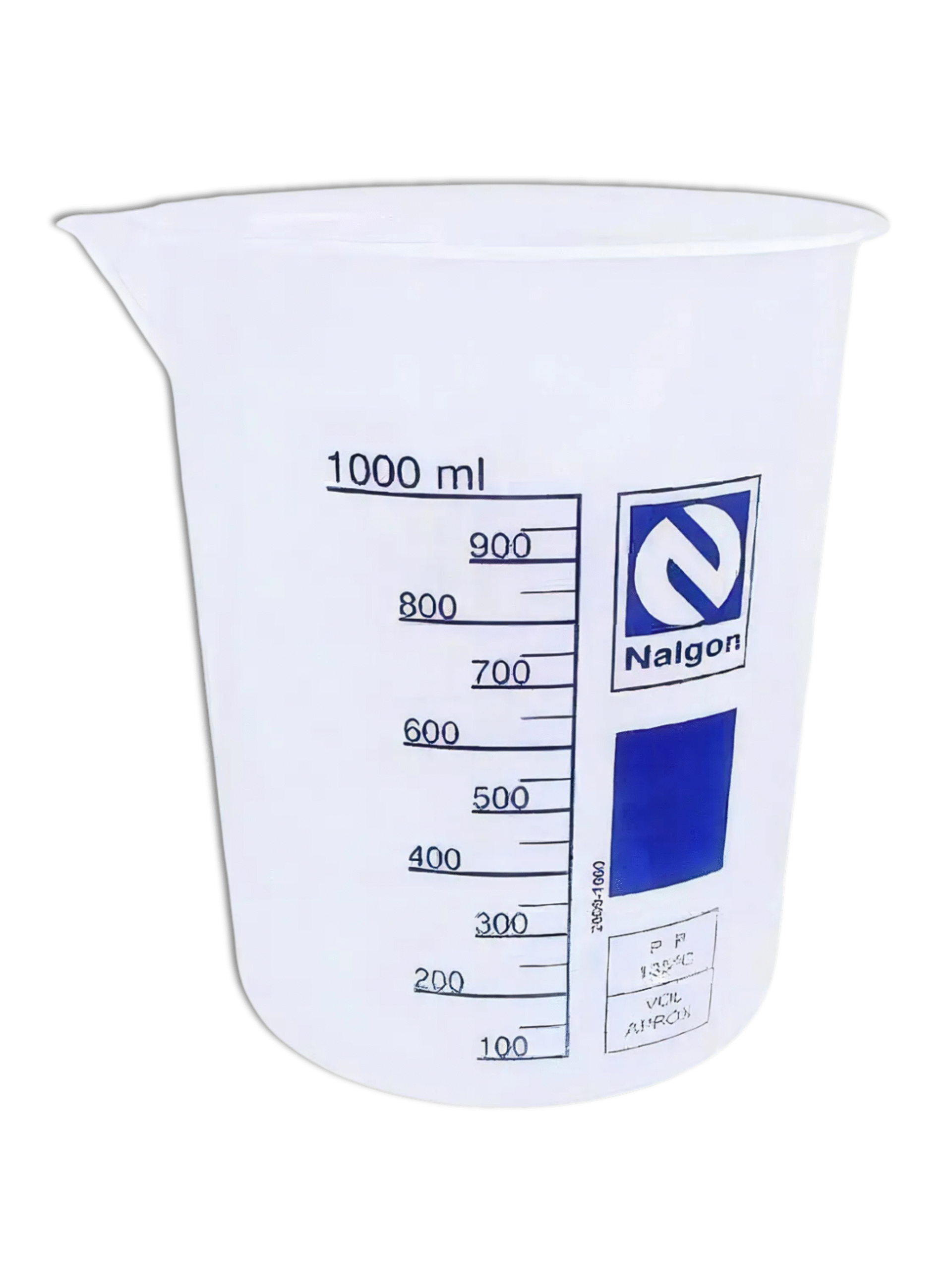 Recipiente cilíndrico com bico vertedor, empregado no preparo e manipulação de soluções utilizadas em rotinas de controle de qualidade em laticínios.
