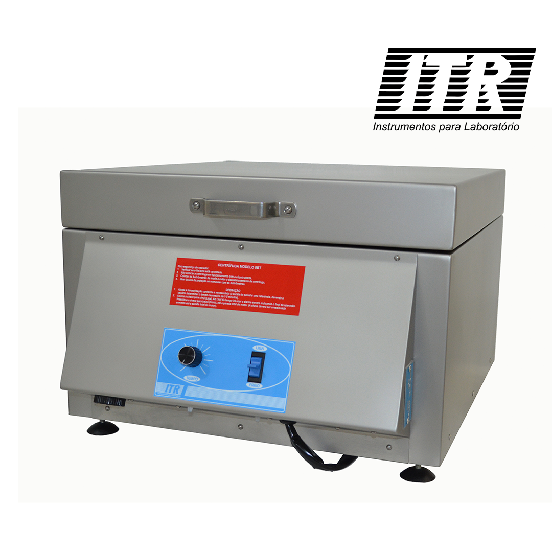 Centrífuga para butirômetros, segundo GERBER, capacidade 08 butirômetros, suporte dos butirômetros em ângulo variável, velocidade nominal ± 1.100 rpm, internamente e externamente em aço inoxidável, câmara de centrifugação segura contra quebra e respingos para o operador, parte elétrica totalmente independente da câmara, o que evita ataque de ácidos nos componentes eletrônicos, com temporizador de 0 até 5 minutos, alarme sonoro e freio elétrico, tensão: 220 V, 60Hz, consumo: 220 VA, peso: 13 Kg, dimensões: 42 x 48 x 28 cm.