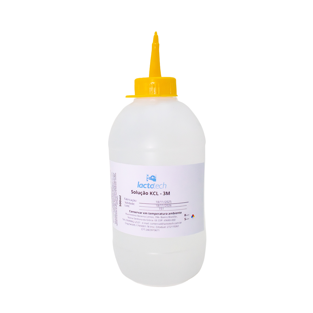A solução de KCl é utilizada para armazenamento, hidratação e manutenção de eletrodos de pH, preservando suas características de resposta e prolongando a vida útil do sensor. Mantém a integridade da junção e assegura a precisão das medições.